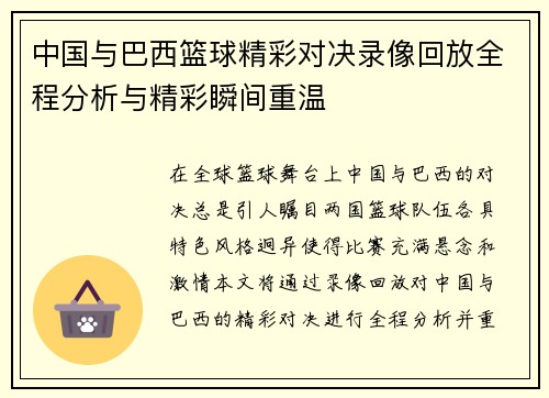 在NBA赛季中,雄鹿与凯尔特人的对决向来备受瞩目,两支球队都拥有出色的球员和丰富的战术体系。本文将对两队的精彩对决进行视频回顾,并从比赛过程、关键球员表现、战术分析及赛后影响四个方面进行深入探讨。通过这些分析,我们不仅能够回顾比赛中的精彩瞬间,还能更好地理解双方在比赛中展现出的实力与策略,为未来的相遇提供参考。同时,这场对决也为球迷们带来了无数激动人心的时刻,值得我们细细品味。 1、比赛过程精彩...